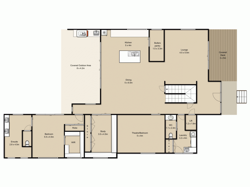The media room, laundry, powder room and lift to the garage complete the ground-level floor-plan.