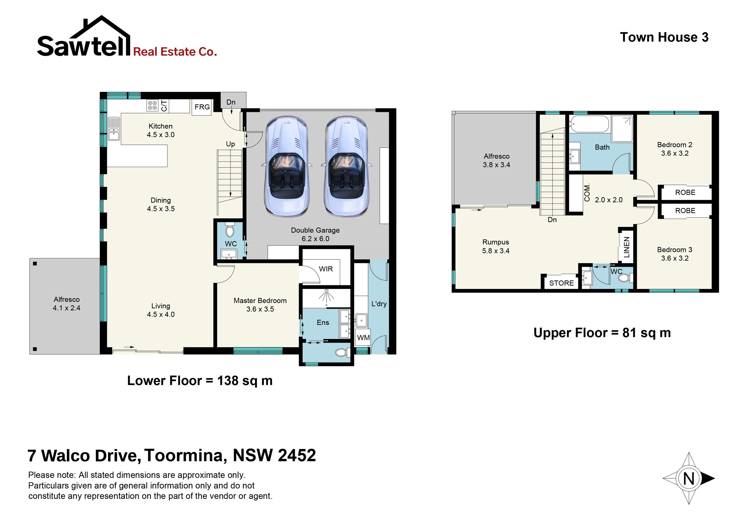 This beautifully finished, 3-bedroom, 2-bathroom townhouse is spacious and perfect for those looking to downsize but still have a reasonable yard space, large double garage & good-sized living areas with the average floor area being 220 m2.