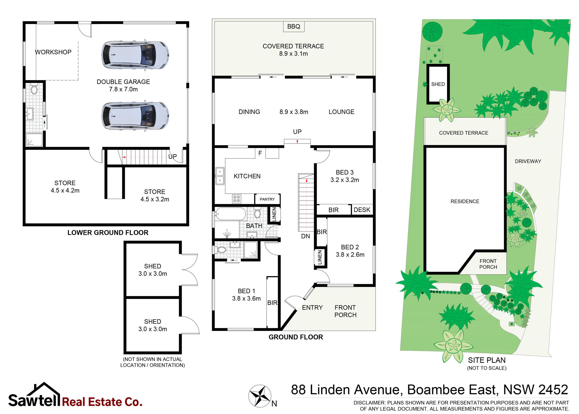The owner has created a large sub floor storage area and in the rear yard are two 3 x 3 sheds.